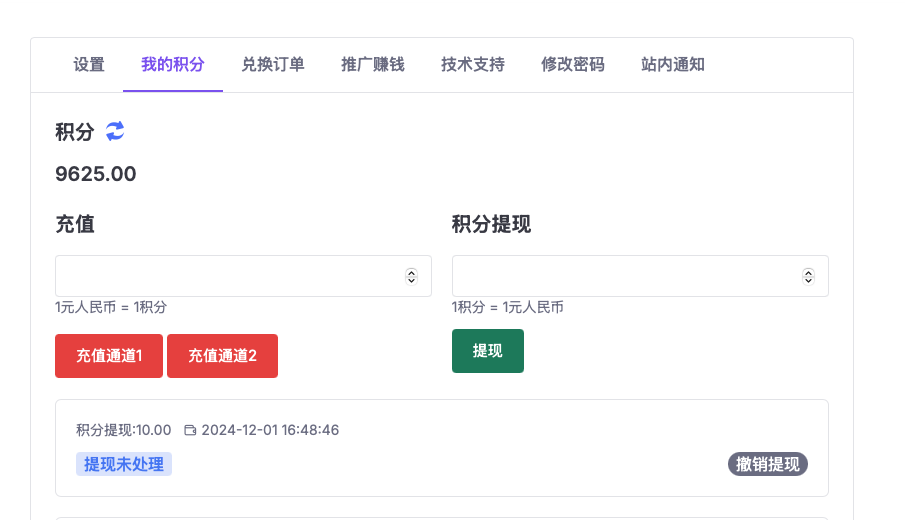 在我的积分栏申请提现10积分,申请后会自动扣除10积分,并可以显示提现申请的状态,在此期间如果反悔可以点击撤销提现,点击撤销提现后系统会自动返还10积分。